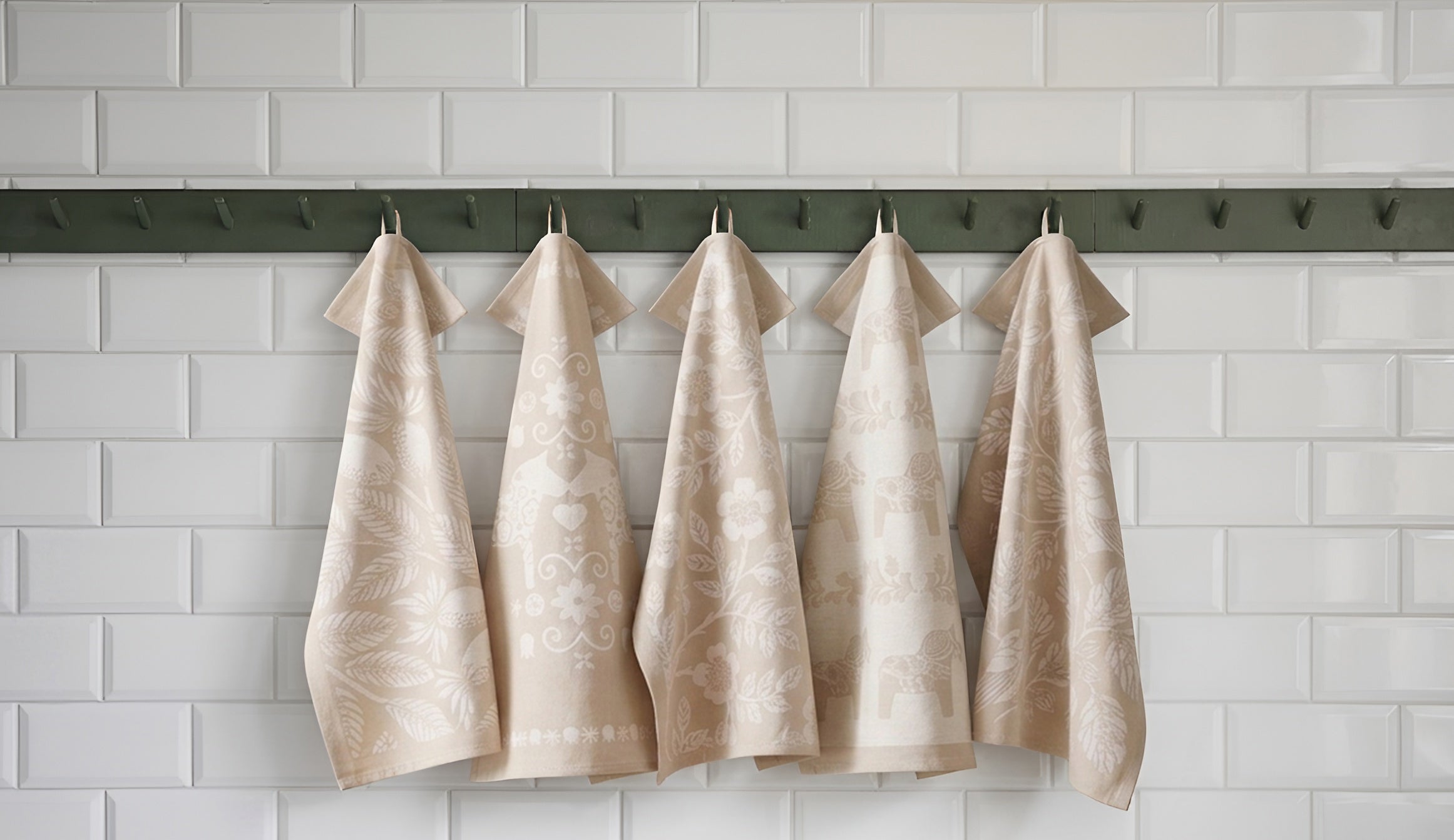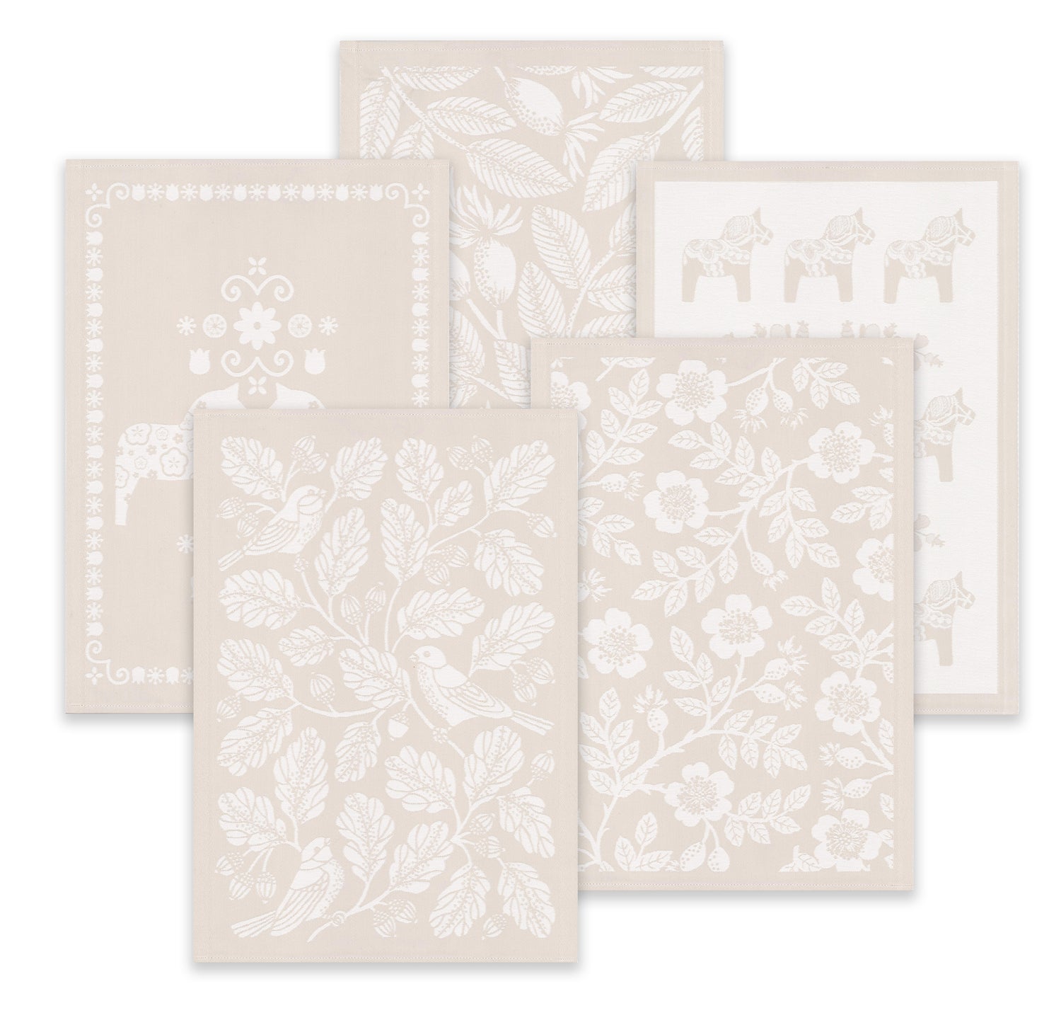 The towels shown are five spring patterns, available in limited quantities. If sold out, we will select similar seasonal styles. All towels are consistent in quality and colour.