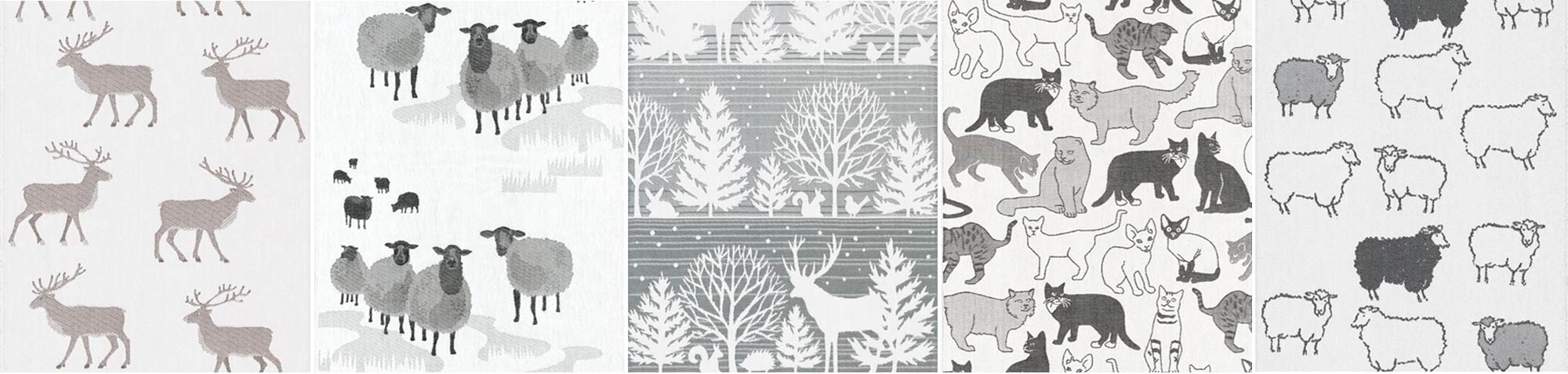 Our most playful collection is called DJUR – as the name suggests, it features designs with animals. Here, you will find all our woven textiles with animal motifs, such as dogs, cats, moose, birds, and much more.
