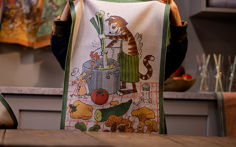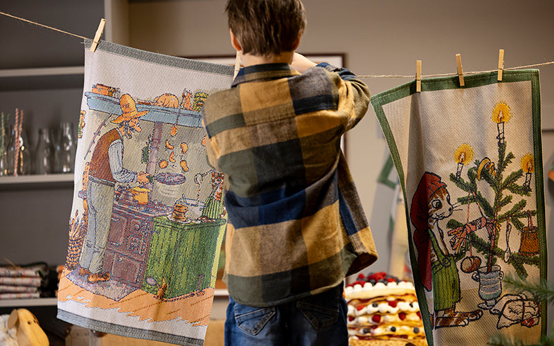 In our collection, you will find products featuring the mischievous and imaginative cat Findus and old man Pettson. Let your decor transform into a playful and creative space with our textiles. All our textiles are woven from organic materials and are GOTS-certified, making them perfect for the nursery or for those who wish to add a little extra charm and humor to their home.