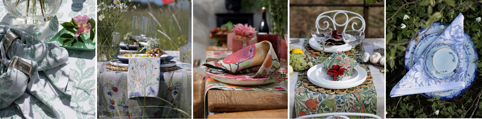 Decken Sie einen eleganten Tisch mit unseren gewebten Servietten und kleinen Tüchern. Unsere Servietten können auch als kleine Tischdecken, dekorative Kaffeetücher oder in Kombination mit unseren gewebten Tischläufern und Tischdecken verwendet werden.