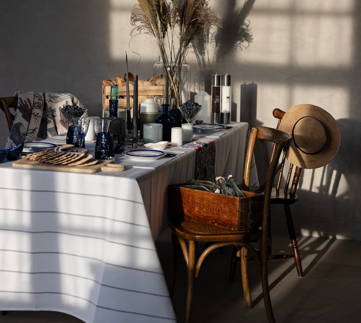 Eine Tischdecke bestimmt die Atmosphäre an Ihrem Esstisch – sie verwandelt ihn in einen Ort des Miteinanders und spiegelt still die Sorgfalt und Vorbereitung wider, die hinter einer gemeinsamen Mahlzeit stehen. Eine Tischdecke kann verspielt, elegant, festlich oder zeitlos sein.